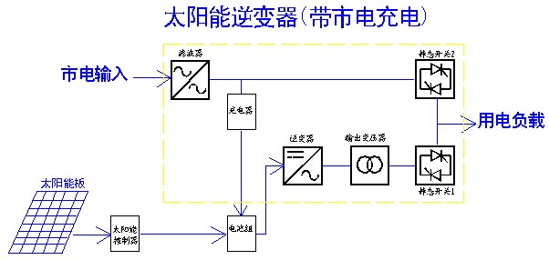 主用于光伏給電池充電,市電為互補(bǔ)充電。